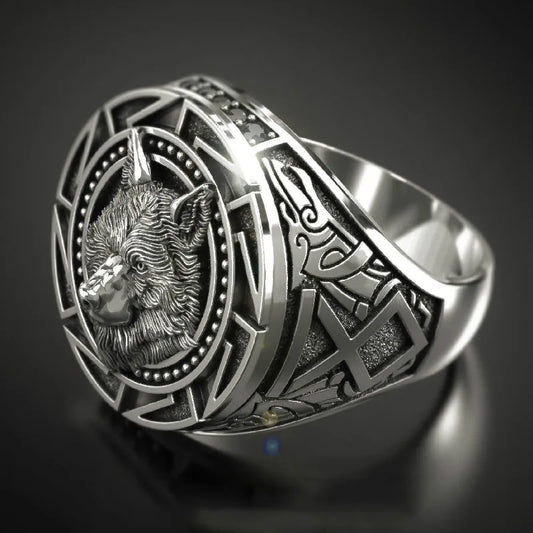 Men's Vintage Wolf Totem Ring Nordic Mythology Viking Warrior Wolf Head Men's Ring Domineering Fashion Men's Ring Wholesale