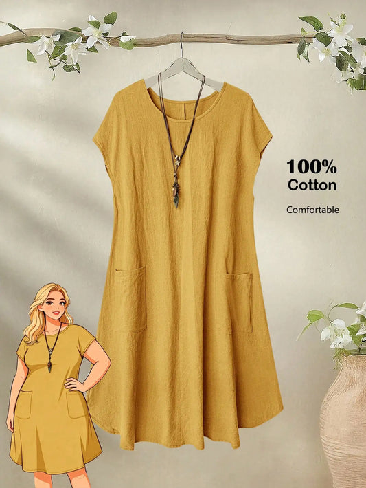 Plus Size Women Summer Casual Round Neck Short Sleeve Solid Green Pock