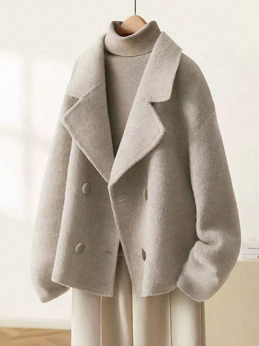 Women's Vintage Casual Notched Collar Double-Breasted Wool Blend Jacket, Autumn